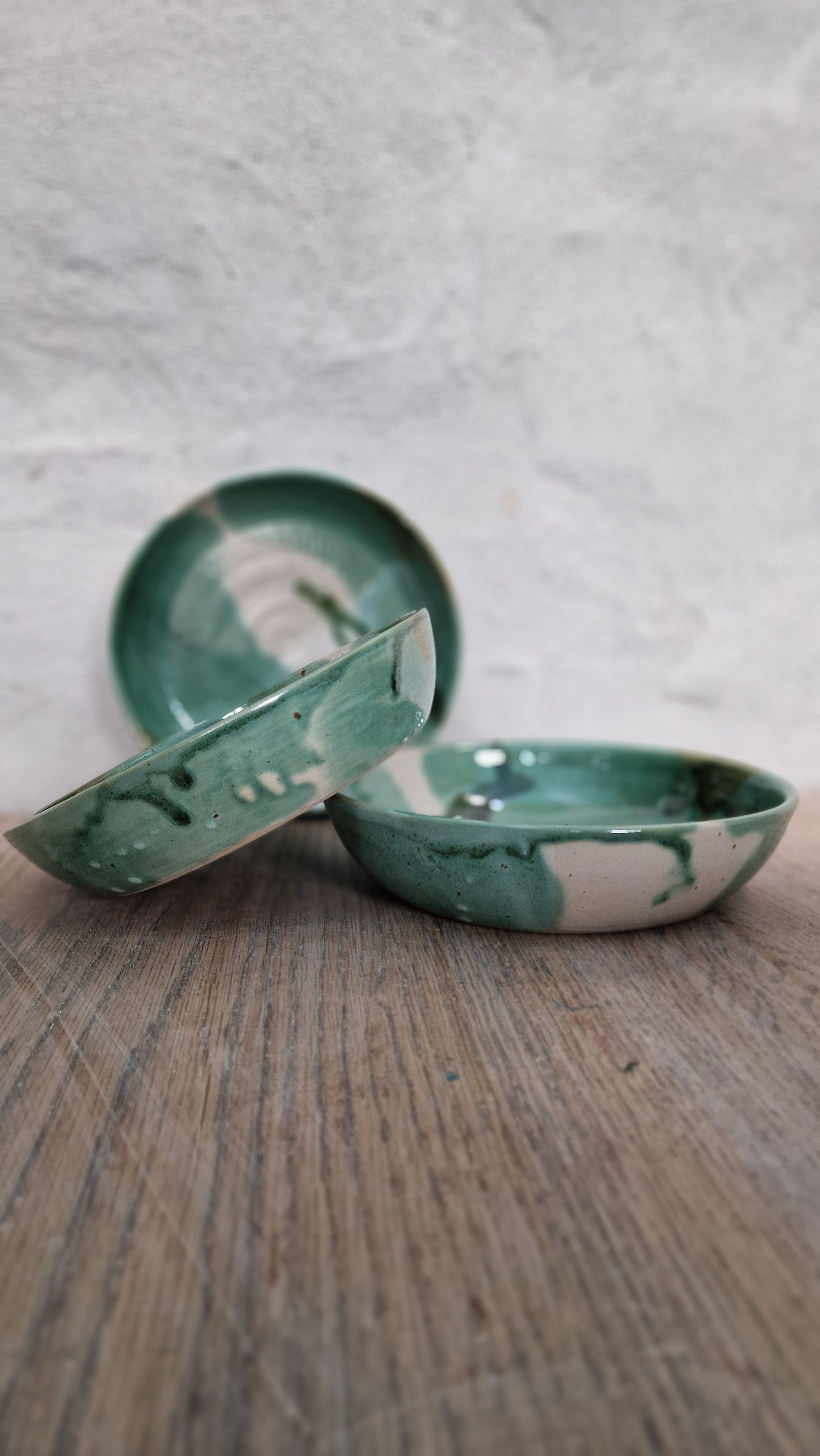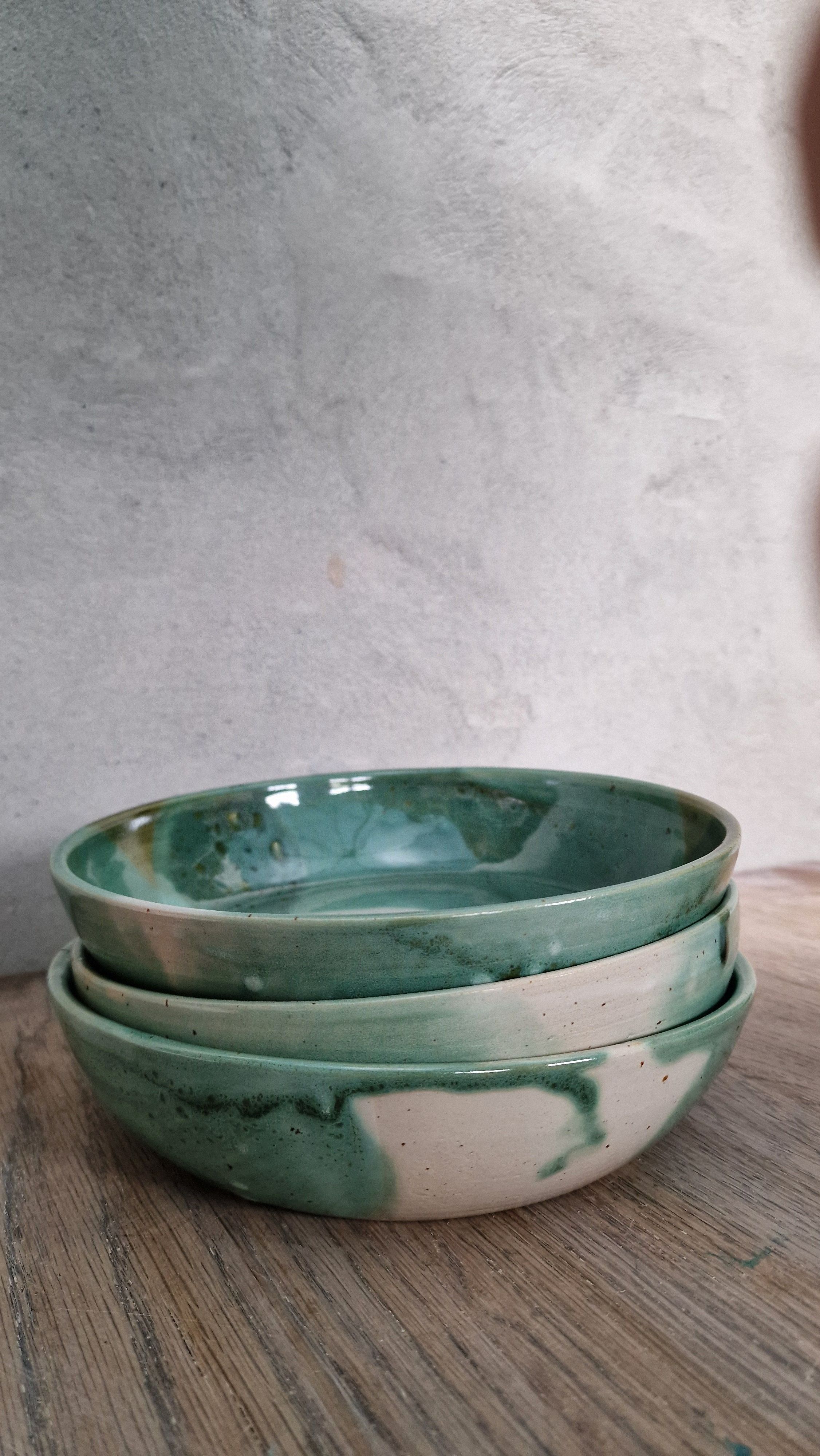 Farverige keramik skåle i stentøjsler funktionelle og dekorative.