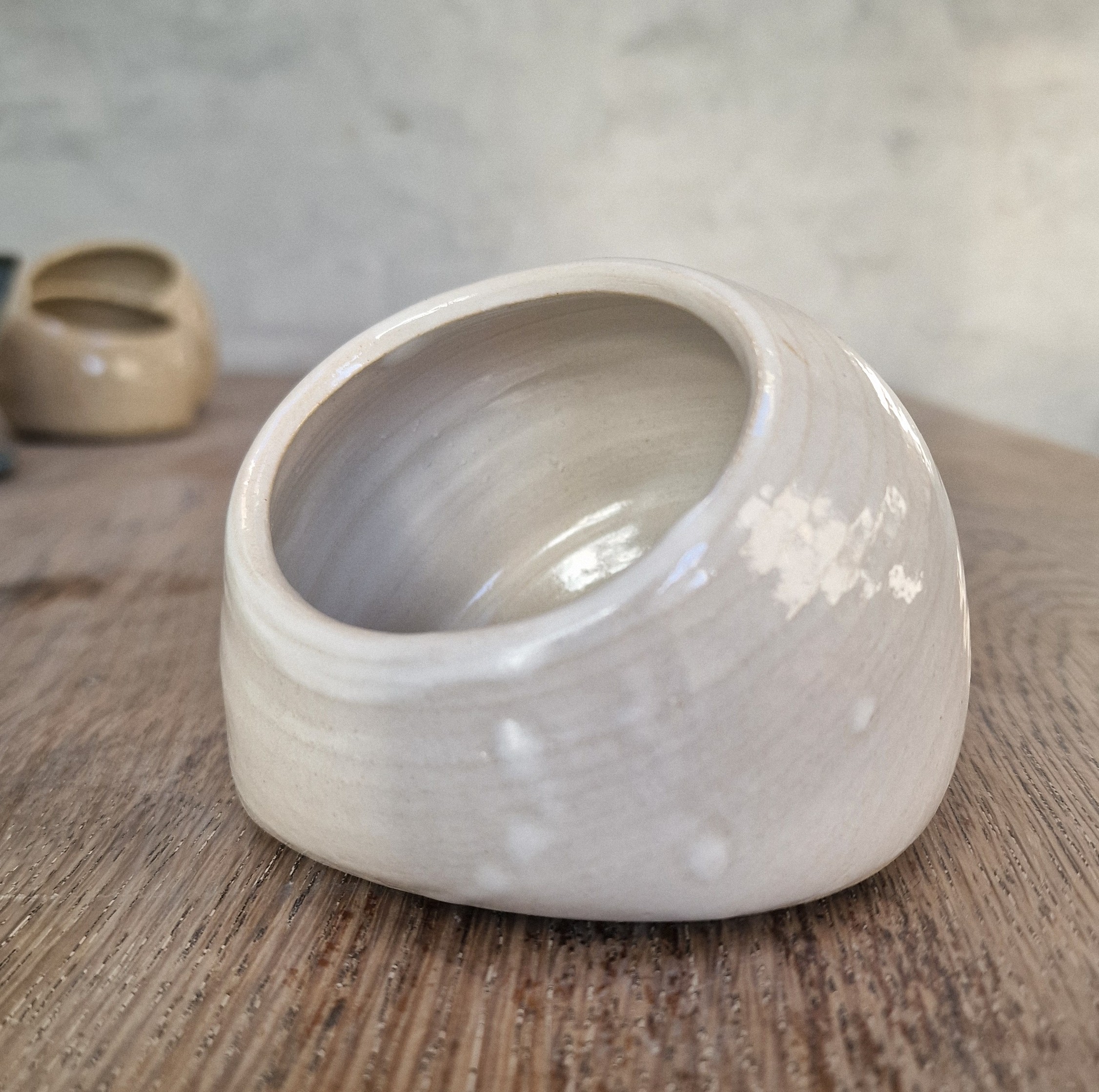 Finurlig og dekorativ lille saltkrukke i lys stentøjsler.